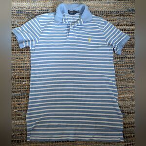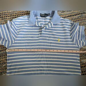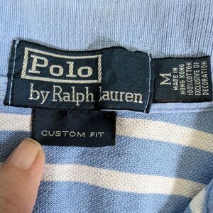 Polo Ralph Lauren Vintage Blue Striped Polo Shirt M 100% Cotton Hong Kong