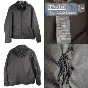 Polo Ralph Lauren Vintage Flight Jacket Mens Size Medium Black Logo Moto Zip