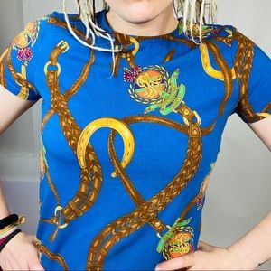Cha•Ching! Jackpot! This vintage tee has belt and horseshoe print with Polo Ralph Lauren stamped all over. This is one of those classic 90s Polo pieces that you just can’t pass up! Plus, it doesn’t look like a tee. It has more of a blouse-y appearance to it. Size small. In excellent condition!