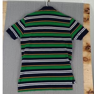 Add a touch of preppy style to your wardrobe with this vintage Polo Ralph Lauren polo shirt. Featuring a classic green and blue striped design, this luxury polo is perfect for any occasion.