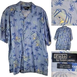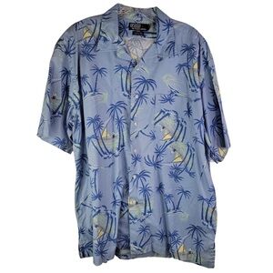 Polo Ralph Lauren Vintage Rare Beach Button Up Short Sleeve Mens Large Blue