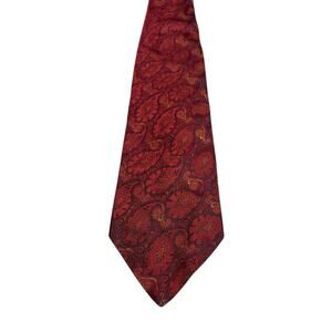 Make a classic statement with this vintage Polo by Ralph Lauren necktie. The rich, deep red and burgundy colors are woven into an intricate paisley pattern, offering a luxurious, old-money aesthetic. This tie is a wider cut, perfect for a traditional, sophisticated look or for the modern man embracing retro styles.