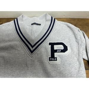 Polo Ralph Lauren V-neck Fleece in Grey Varsity Letterman Sweatshirt Dress XS