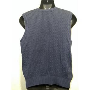 Polo Ralph Lauren Vneck Mens Large Golf Vest Cable Knit Blue Crest USA Made