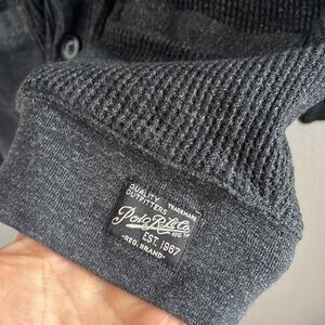 Polo Ralph Lauren Waffle Knit Sweater Button Front Cozy 100% Cotton Gray