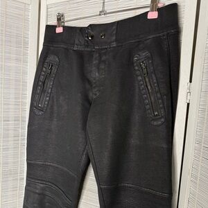 ✨ Polo Ralph Lauren wax sweat joggers. Material is coated in a wax like substance. Zipper fly. Zipper pockets. Cotton blend. Good used condition.