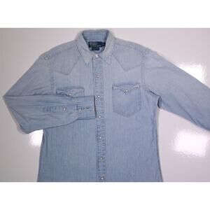 Polo Ralph Lauren Western Denim Chambray Pearl Snap Cowboy Shirt Men's Small