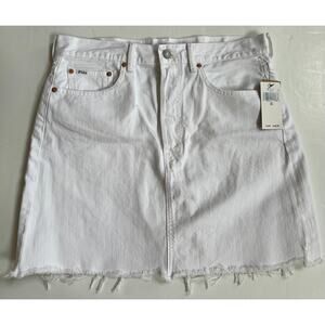 Polo Ralph Lauren White Distressed Hem Short Denim Skirt Women Size 30 NWT $168