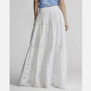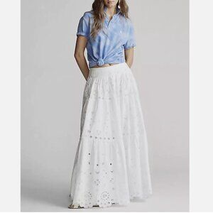 Polo Ralph Lauren White Eyelet Tiered Poplin Maxi Skirt