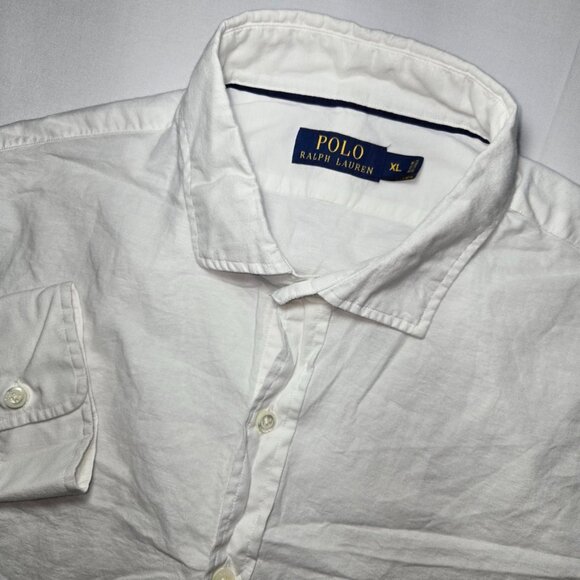 Polo Ralph Lauren White Linen Cotton Blend Button Up Shirt Men's XL Long Sleeve