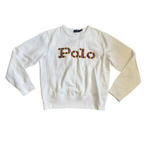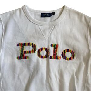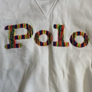 Polo Ralph Lauren White Sweatshirt Size M Yarn Colorful Logo