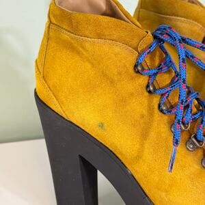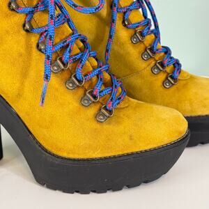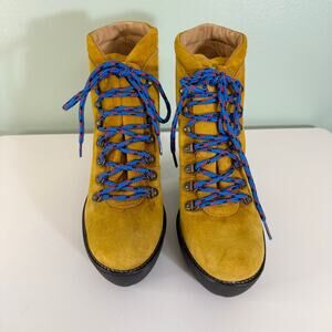 Polo Ralph Lauren Women 41 US 11 Yellow Lace Up Platform Heel Helene Ankle Boots