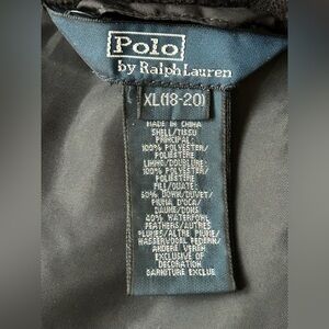 Polo Ralph Lauren Womens Black Down Puffer Jacket Size XL Removable Hood Travel