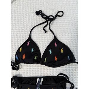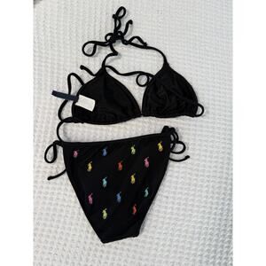 Polo Ralph Lauren Women's Black Icon Pony String Bikini Set Size 6