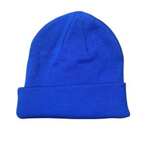 Polo Ralph Lauren Women's Blue Rib Knit Fold Over Logo Patch Beanie Cap Hat OS