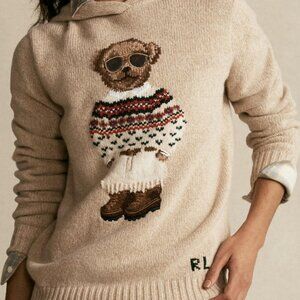 Polo Ralph Lauren Women's Natural Polo Bear Wool-blend Knit Hoodie. Size Medium.