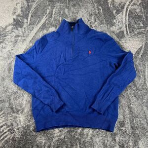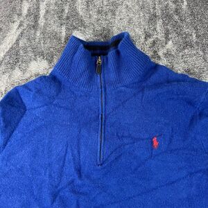 Polo Ralph Lauren Wool Cashmere 1/4 Zip Men's L Blue Mock Neck Sweater