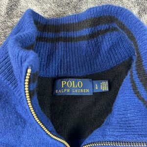 Polo Ralph Lauren Wool Cashmere 1/4 Zip Men's L Blue Mock Neck Sweater. **No flaws noted; refer to all photos for condition and sizing.
