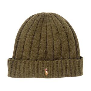 Polo Ralph Lauren Wool Ribbed Beanie Winter Hat Olive Green OSFM