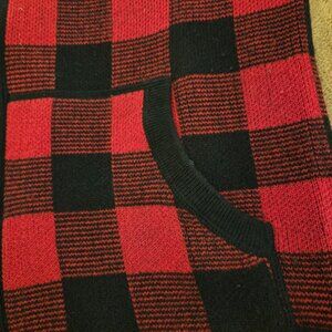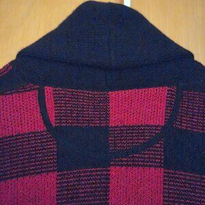 Polo Ralph Lauren Wool Shawl Collar Button Up Cardigan Mens Medium. Buffalo Plaid in Red and Black. Body of sweater is 100% Wool, Cuffs and Hem are 89% Wool, 9% Nylon and 2% Spandex to hold their shape. Two front pockets. Logo in button placard. Heavy knit that is super soft and warm. Excellent condition.