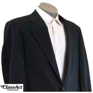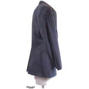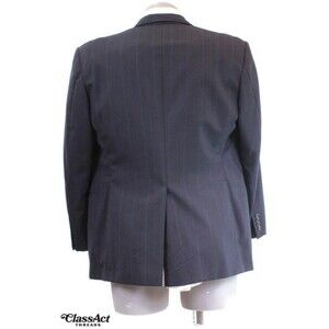 This Polo Ralph Lauren Wool Sport Coat Suit Jacket is a vintage piece with a classic striped design in blue, featuring a four-button sleeve style and a two-button front closure. Made of wool and rayon fabric, this blazer has a notch lapel style and a single vented back, suitable for various occasions such as weddings, parties, or business events. With a chest size of 43 inches and a regular fit, this designer piece also includes inner pockets and a polyester lining for added functionality and style.
