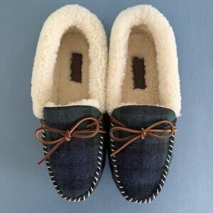Polo Ralph Lauren Yarmond Slippers Shearling Lined Blackwatch Plaid NWOB Mens 9
