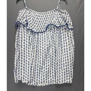 Polo Ralph Lauren blue and white off-shoulder ruffle top with floral print and blue trim. Lightweight and flowy, perfect for a coastal, cottagecore, or summer indie aesthetic. Adjustable straps for a comfy fit. Ideal for beach days, festivals, or casual layering. Size 6X.