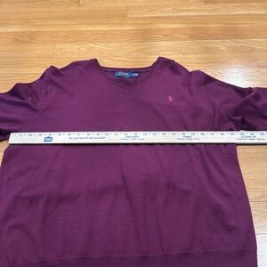 Polo Ralph Lauren burgundy washable merino wool vneck sweater size XXL.