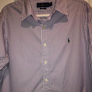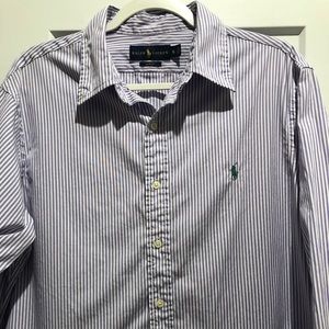 Purple and white striped Ralph Lauren button down. Slim fit XL