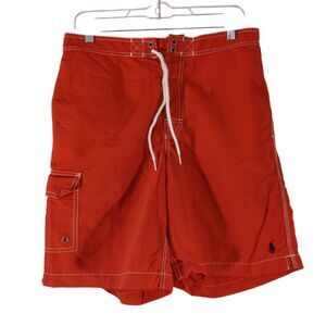 -Polo Ralph Lauren cargo swim trunks board shorts mens Small red lined drawstring