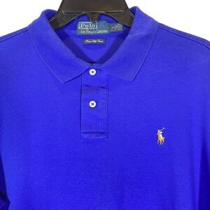 Polo Ralph Lauren collared pol0 shirt L Blue Pima soft touch cotton small horse