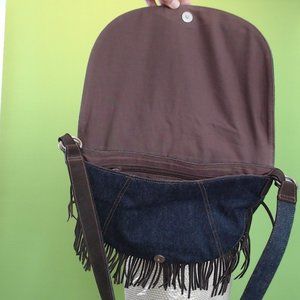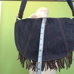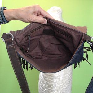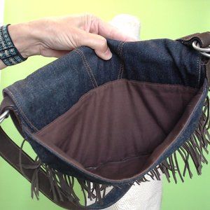 Polo Ralph Lauren denim and leather fringe shoulder bag