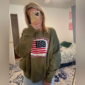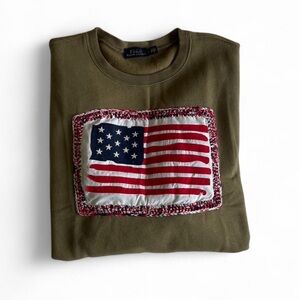 Polo Ralph Lauren flag embroidered green crewneck sweatshirt woman’s size small