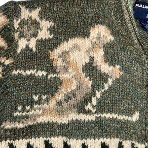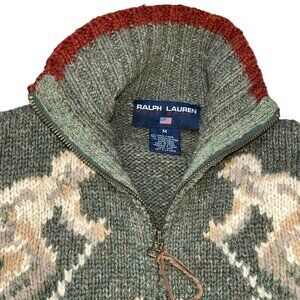 Polo Ralph Lauren green cream SKI intarsia knit zip up navajo sweater M