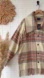 Fold-over flap with fringe trim extends to the back. Buttoned placket.
