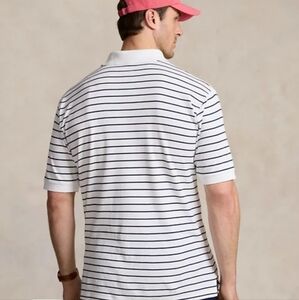 An American style standard since 1972, the Polo shirt has been imitated but never matched. Over the decades, Ralph Lauren has reimagined his signature style in a wide array of colors and fits, yet all retain the quality and attention to detail of the iconic original. This striped Big & Tall version is made with luxe cotton interlock that features an ultrasoft finish.