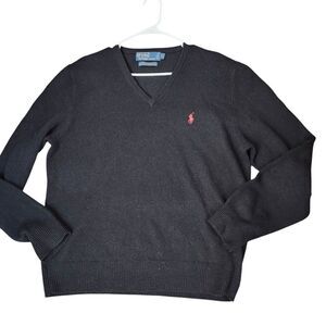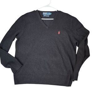 Polo Ralph Lauren men's black v-neck lambswool pullover sweater Sz LG