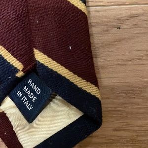 Polo Ralph Lauren burgundy, navy and yellow striped tie.
