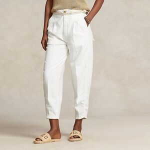 Polo Ralph Lauren white balloon chino pant. NWT. High waist with adjustable waist button strap. Fun hem at the legs creating a balloon look. I will steam before sending out:)