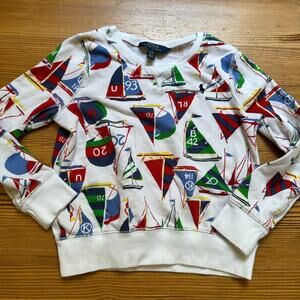 Polo Ralph Lauren white colorful sailboat graphic crew sweatshirt SIZE 8