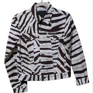 Polo Ralph Lauren zebra print denim trucker jacket brown & cream women's Small