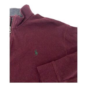 Elevate your style with this handsome Polo Ralph Lauren burgundy sweater. Crafted from a comfortable cotton blend, this pullover sweater features a mock neck and long sleeves. The 1/4 zip, accented with an embroidered logo, adds a touch of sophistication to the design.