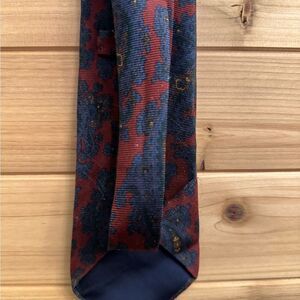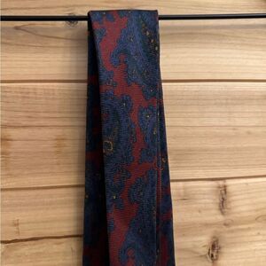 Deep Red & Navy Blue Paisley Printed 100% Silk Tie