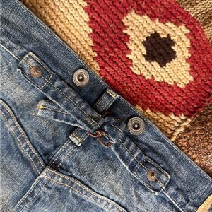 New with tags, intentional distressing & repairs, stick pic for inspo