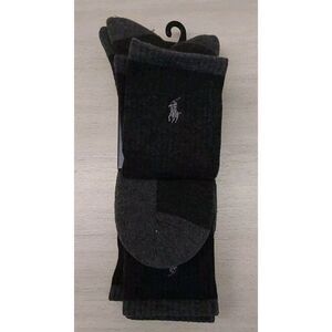 Polo Ralph Lauren Mens Premium Comfort Black Heather 3-Pack Crew Socks Sz 10-13