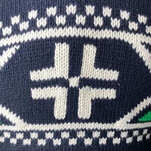 Beautiful and bold, black ground with kelly green, and white Fair Isle/geometric/Nordic/Aztec pattern.