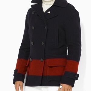 Polo Ralph Lauren Merino Wool Black & Red Double Breasted Top Over Pea Coat
