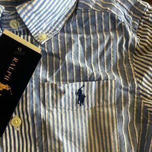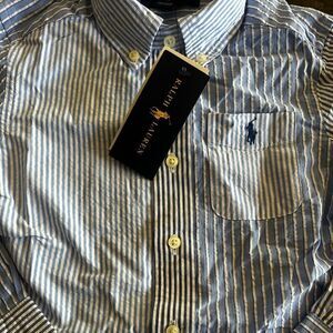 Polo Ralph Lauren Natural Stretch Fit Striped Cotton Dress Blue Dress Shirt