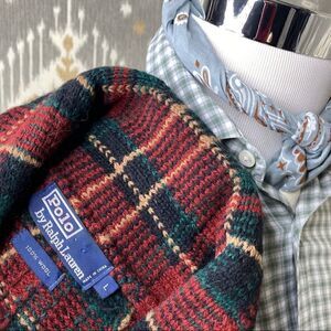 Polo Ralph Lauren Red & Green Multi Tartan Plaid Shawl Collar L/S Sweater
