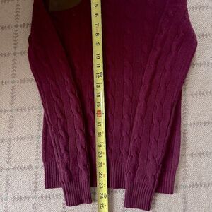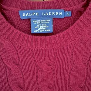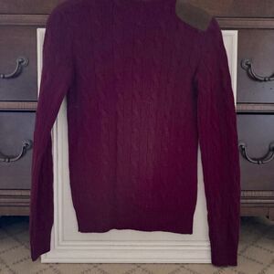 Polo Ralph Lauren Burgundy cashmere blend cableknit sweater w suede patch NWOT S